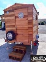DécouvrirChalet en bois mobile sur remorque, idéal pour votre activité ambulante.